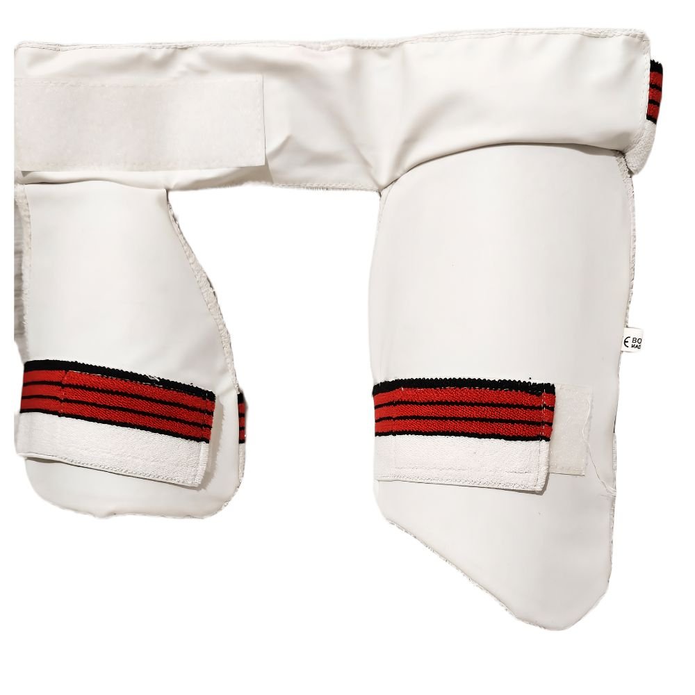 Junior-size cricket thigh pad specially designed for young players starting their cricket journey. Made with durable PVC material for long-lasting use, it features high-density foam padding for reliable protection while maintaining lightweight comfort. The inner side is lined with soft, sweat-absorbing cotton fabric to keep players dry during play. Designed for convenience, the top section easily attaches to the batting pad on both sides, allowing quick wearing and removal with a secure fit. Ideal for practice sessions and match play.